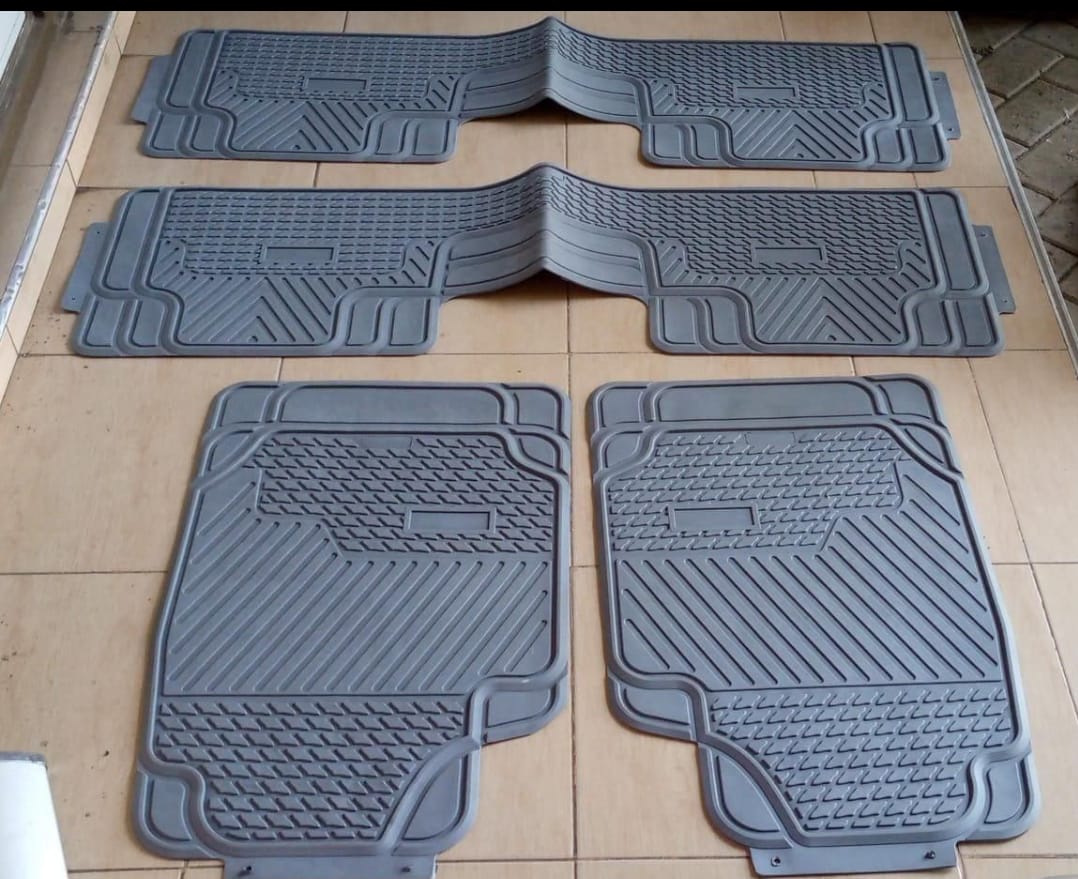 4-piece heavy-duty rubber floor mats for 7-seaters, with 2 front mats and 2 long rear mats. Available in grey and black for durable, stylish interior protection.