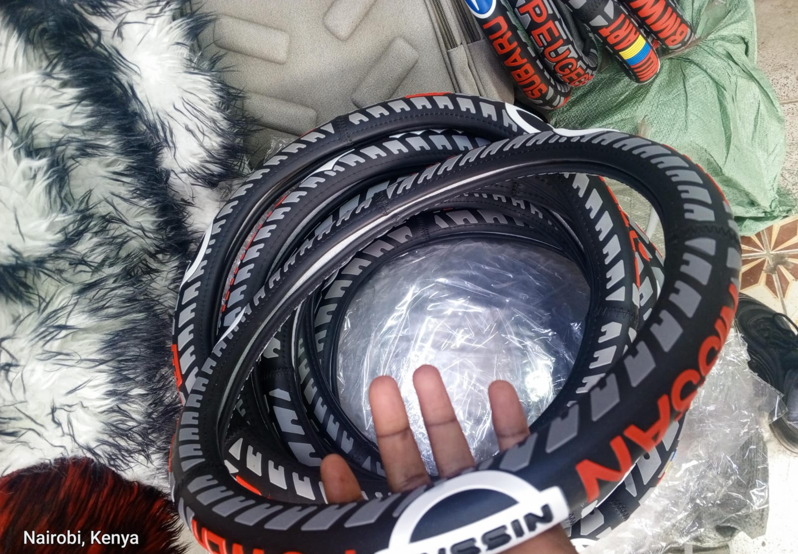 High-quality Nissan-branded steering wheel cover designed for comfort, grip, and interior protection.